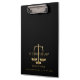 Clipboard. Attorney at Law - Black and Gold. ✔Note: Not all template areas need changed. 📌If you need further customization, please click the "Click to Customize further" or "Customize or Edit Design" button and use our design tool to resize, rotate, change text color, add text and so much more. ⭐This Product is 100% Customizable. Graphics and / or text can be added, deleted, moved, resized, changed around, rotated, etc... ⭐99% of my designs in my store are done in layers. This makes it easy for you to resize and move the graphics and text around so that it will fit each product perfectly. 📌 (Please be sure to resize or move graphics if needed before ordering) You can also "TRANSFER DESIGN" on other Zazzle products and adjust the design to fit most of Zazzle items. (button is down on the right side of the page) This design is made with high resolution vector and/or digital graphics for a professional print. 📌NOTE: (THIS IS A PRINT. All Zazzle product designs are "prints" unless otherwise stated under "About This Product" on the left side of this page) The design will be printed "EXACTLY" like you see it on the screen and on the product...so please make sure when you do your changes on the resizing of any of the graphics or text that it fits in the areas correctly and that your spelling and wording is how you like it to be in size, color and font. You can visit my store link for ART DESIGN questions at: https://www.zazzle.com/store/letsudesignit (Copy and Paste) I'll be happy to help. 📌 ALL OTHER QUESTIONS (shipping, refund, the printing, the product, etc...) please contact Zazzle or the Maker ⭐DIRECTLY⭐. Thank you for the support and stopping by my store - LetsUDesignIt. ⭐⭐⭐ ZAZZLE promises 100% satisfaction. If you don't absolutely love it, Zazzle will take it back! ⭐⭐⭐ 1-888-8ZAZZLE (1-888-892-9953) Phone hours: Mon - Fri: 9AM - 5PM PT (12PM - 8PM ET)