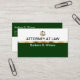 Attorney business cards with powerful but simple black and white two side design that includes a simulated gold scale of justice, gold divider line, and text layout you can customize and personalize. Best business cards for a law practice, law offices, attorney or legal defense counsel.