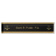 Attorney executive desk name plate in high quality acrylic with black name plate that has simulated metallic printed design elements that give this desk name plaque some character and style for any professional law office staff, lawyers, or executives.
