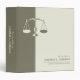 Professional business binder in two tones for attorney at law / lawyer / law firm / justice and legal related fields with stylized scale logo on khaki and cream.