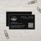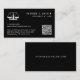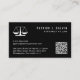 Minimal and elegant black professional business card for attorneys and legal professionals featuring an illustration of the scales of justice and your name, title (Attorney At Law, Counselor, Partner, etc.) and contact information (such as email, telephone numbers, firm name and mailing address) in clean, simple and modern lettering. Input a URL address to create a scannable QR code linked to your website, social media profiles, or any other platform that showcases your work, making it easy for others to explore your expertise. On the back, customize additional text or leave blank.
