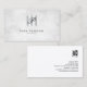 This elegant professional attorney business card features an elegant marble texture background. Your monogram letter appears in as a bold fancy script letter in a subtle dark grey hue within a silver textured square. Your name and title appear in the lower middle section, below the silver monogram square. Perfect for professional, administration, management, professional, sophisticated, contemporary, minimalist themes.