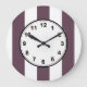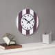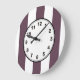 Aubergine Eggplant and White XL Stripes Pattern Large Clock