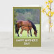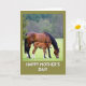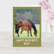 This card features an adult horse and her young foal standing close together in a green meadow, their bodies angled in a way that suggests a gentle, trusting bond ❤️. The larger horse has a deep auburn coat with a dark mane and tail, and she lowers her head to graze while the foal stays near her side as if keeping watch. The foal’s coat is a warmer reddish-brown, slightly lighter than the adult’s, and its alert stance and soft gaze feel like a quiet moment of closeness between them. Soft, diffused light falls across the grass, bringing out rich green tones and giving the scene a calm, affectionate mood. Near the top, a short Mother’s Day greeting sits in a simple, easy-to-read style, set in a dark color that stands out against the pale sky area 🌼. The background fades into rolling hills and dense foliage, gently blurred so the pair remains the focus. A single bright green bush anchors the left side of the scene, with layered grass textures filling the foreground.