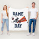 This cozy blanket proudly showcases support for Auburn University on game day! It features a classic football helmet with the iconic blue "AU" logo, centered between the words "GAME" and "DAY" in bold blue lettering. A vibrant orange pennant extends from behind the helmet, proudly displaying a stylized tiger mascot face and the word "TIGERS." This impactful and recognizable design is ideal for staying warm while cheering on the Auburn Tigers, whether at home or at the stadium.