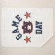This cozy sherpa blanket proudly showcases support for Auburn University on game day! It features the iconic Auburn "AU" logo prominently displayed at its center, vibrant in its traditional orange and blue. Above and below the logo, the words "GAME" and "DAY" are boldly presented in blue, arched lettering, perfectly capturing the excitement of game day. Two orange stars with blue outlines flank the 'AU' logo, adding to the energetic display. This impactful and recognizable design is ideal for staying warm while cheering on the Auburn Tigers, whether at home or at the stadium.
