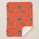 This design pattern features Auburn University's emblematic "AU" logo in bold navy blue with an orange outline. The word "Auburn" appears in stylized, uppercase navy blue letters with orange accents, providing a prominent contrast against the white background. An additional graphic of a tiger's eyes, enclosed in an oval shape with an orange border, reinforces Auburn’s iconic mascot. Scattered across the design are minimalist starburst shapes and small dots in navy blue, adding a festive and dynamic touch that complements the university's spirit and colors.