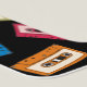Colorful audio cassettes seamless pattern. Custom background color. Custom text.