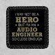 I may not be a hero, but I'm an Audio Engineer so close enough humorous word art in sans-serif and doodle cross-hatch font lettering in white and golden yellow.
