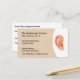Audiologist or otolaryngologist hearing center client appointment business cards created with an ear graphic and custom appointment template on the flip side making use of both sides of the business profile card.