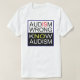juxtapositioning of two different sentences in the 1960's style modern art. First, Audism is wrong. Secondly, if you know Audism, then say 'no/ to Audism.
