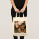 The printing came out very well, better than I had anticipated. The natural color fabric is sturdy with strong seams and comfortable handles. This tote fits easily over my shoulder. As it is filled, the bottom flattens out--very cool! I would buy this product again. This grocery tote holds a lot of groceries! The image quality was very good. The colors were a little darker than I had expected. The darkness may have been due to printing on a natural color fabric rather than on white. The cat design is attractively centered on the tote. The spirit of the design is very lively, just as it appears on the Zazzle website.