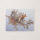 Audubon Cedar Waxwing Bird on Evergreen Juniper Jigsaw Puzzle