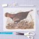 This art features a wild turkey hen is scrambling through a field with her chicks stumbling around her. This is Plate 6 of John James Audubon's Birds of America series. The background is a light parchment paper adding to the vintage feel of this bookplate. This heartwarming design features a turkey hen with her chicks. The turkey hen is a symbol of motherhood, protection, and abundance. The chicks are symbols of new beginnings, growth, and innocence. Together, they represent the love and bond between a mother and her children. The autumn colors and turkey theme are also perfect for a hunting lodge or a masculine den for an outdoor enthusiast.