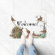 Wonderful collage of vintage botanical fine art of Audubons' Wren Birds and Nests, is on this Welcome Doormat. Image are public domain due to expired copyright. Collage is by me.
