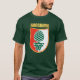 My 11 yo wore adult XL (5’7” 165#). The 8yo is small framed. She wore adult small and tied it in the back. Grandma wore adult large with long sleeve shirt underneath. Tall girl adult medium. Dark haired male adult large. Good quality dark Heather gray, Gildan brand shirt. -it was next up from basic choice and cost about $20 per shirt. Not too thick or thin. Washed and dried well, no major shrinkage. Not see-through. Can wear a bra under it fine. Screen print is just as shown and well done, front and back.