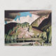 Alfred Joseph Casson was a member of the Canadian group of artists known as the “Algonquin Group”or “The Group of Seven”. He painted with clear colors and a limited palette, choosing a simplified style with the landscapes of southern Ontario as his subject. This painting is called “August Algonquin Park”.A serene landscape features rolling hills covered in lush green trees, reflected in a tranquil body of water below. Dramatic clouds hover in the sky, casting contrasting shadows over the scene.