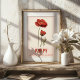 This striking poster celebrates August birthdays with the bold and beautiful poppy, their birth flower. Poppies symbolize eternal sleep, peace, and imagination – a unique and captivating combination for an August baby! This design features a vibrant poppy in full bloom, adding a burst of color and energy to any room.