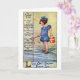 Little One's Birthday and Fortune Card A girl wearing an old fashioned bathing suit and carrying a shovel and pail, wades in the water at the beach in a vintage postcard from 1911.