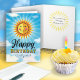 Make your Aunt feel special on her birthday by sending her this cheerful smiling decorative Yellow and orange sun floating in the blue sky with clouds. Inside text says "The sun started shining just a little brighter on the day you were born."