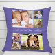 Celebrate a favorite aunt with this custom purple keepsake pillow featuring a 6 photo collage of her nieces and nephews, their names, "I Love You" or "We Love You" in a white script, and whether she is called "Aunt," "Auntie," "Tia," etc.