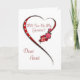 Invitation for aunt to be a Greeter. A wonderful invitation for your wedding attendants.They will treasure this card forever. A modern take on a traditional theme shows a swirling heart with red roses. Copyright Norma Cornes.