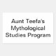Aunt Teefa's Mythological Studies Program Fake-Liberal-Arts Splash-Art sticker-design by Jeff Hankamer at Artjunkhaus