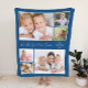 Celebrate a favorite aunt with this custom photo collage blue blanket featuring 6 family photos of nieces, nephews, pets, etc., their names, "I Love You" or "We Love You," and whether she is called "Aunt," "Auntie," "Tia," etc.