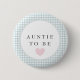 This soft blue gingham auntie to be baby shower button has a cute little pink heart.