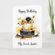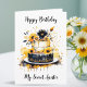 A sweet birthday card for an Aunt that can be personalized, featuring a pretty birthday cake with black and white frosting and yellow sunflowers.