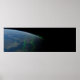 A breathtaking view of Earth's aurora borealis captured from the perspective of space, showing the brilliant green curtains of light dancing along our planet's upper atmosphere. This natural phenomenon occurs when charged particles from the solar wind interact with Earth's magnetic field and atmosphere, creating luminous displays typically visible near the polar regions. The aurora appears as ethereal green ribbons stretching across the night side of Earth, with the planet's curved horizon and thin atmospheric layer visible below. This stunning orbital perspective demonstrates how our planet's magnetic field protects us from harmful solar radiation while simultaneously creating one of nature's most spectacular light displays, visible both from the ground in polar regions and from the International Space Station above.