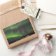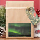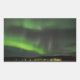 Sticker with green rays of aurora borealis (northern lights) in the night sky over a frozen lake in Lapland.