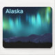 A multi-colored, fractal rendering of the aurora borealis, or Northern Lights, superimposed on a digital painting of snow-covered mountains. Text reading "Alaska" appears in glowing blue and white. The aurora borealis (or Northern Lights), named after the Roman goddess of dawn, Aurora, and the Greek name for the north wind, Boreas. Many cultural groups have legends about the lights. In medieval times, the occurrences of auroral displays were seen as harbingers of war or famine. The Maori of New Zealand shared a belief with many northern people of Europe and North America that the lights were reflections from torches or campfires. The Menominee Indians of Wisconsin believed that the lights indicated the location of manabai'wok (giants) who were the spirits of great hunters and fishermen. The Inuit of Alaska believed that the lights were the spirits of the animals they hunted: the seals, salmon, deer and beluga whales. Other aboriginal peoples believed that the lights were the spirits of their people. The connection between the Northern Lights and sunspot activity was suspected as far back as 1880. Thanks to research conducted since the 1950's, we now know that electrons and protons from the sun are blown towards the earth on the 'solar wind'. (Note: 1957-58 was International Geophysical Year and the atmosphere was studied extensively with balloons, radar, rockets and satellites. Rocket research is still conducted by scientists at Poker Flats, a facility under the direction of the University of Alaska at Fairbanks. The temperature of the sun's atmosphere is millions of degrees. At this temperature, collisions between gas molecules are frequent and explosive. Free electrons and protons are thrown from the sun's atmosphere by the rotation of the sun and escape through holes in the magnetic field. carried eartward in the solar wind, the charged particles are largely deflected by the earth's magnetic field. However, the earth's magnetic field is weaker at either pole and therefore some particles enter the earth's atmosphere and collide with gas particles in the higher layers (thermosphere). These collisions emit light that we perceive as the dancing lights of the north (and the south). Most aurorae occur in a band known as the auroral zone,which is typically 3° to 6° in latitudinal extent and at all local times or longitudes. The auroral zone is typically 10° to 20° from the magnetic pole defined by the axis of the Earth's magnetic dipole. During a geomagnetic storm, the auroral zone will expand to lower latitudes. The diffuse aurora is a featureless glow in the sky which may not be visible to the unaided eye even on a dark night and defines the extent of the auroral zone. The discrete aurora are sharply defined features within the diffuse aurora which vary in brightness from just barely visible to the unaided eye to bright enough to read a newspaper at night. Discrete aurorae are usually observed only in the night sky because they are as bright as the sunlit sky. Aurorae occasionally occur poleward of the auroral zone as diffuse patches or arcs (polar cap arcs, which are generally invisible to the unaided eye. Because the phenomena occurs near the magnetic poles, northern lights have been seen as far south as New Orleans in the western hemisphere, while similar locations in the east never experience the mysterious lights. However the best places to watch the lights (in North America) are in the northwestern parts of Canada, particularly the Yukon, Nunavut, Northwest Territories and Alaska. Auroral displays can also be seen over the southern tip of Greenland and Iceland, the northern coast of Norway and over the coastal waters north of Siberia. Southern auroras are not often seen as they are concentrated in a ring around Antarctica and the southern Indian Ocean. Auroral displays appear in many colors. Variations in color are due to the type of gas particles that are colliding. The most common auroral color, a pale yellowish-green, is produced by oxygen molecules located about 60 miles above the earth. Rare, all-red auroras are produced by high-altitude oxygen, at heights of up to 200 miles. Nitrogen produces blue or purplish-red aurora. The lights appear in many forms from patches or scattered clouds of light to streamers, arcs, rippling curtains or shooting rays that light up the sky with an eerie glow. Curtain-like structures show field lines in the Earth's magnetic field . The auroras that resulted from the "great geomagnetic storm" on both 28 August and 2 September 1859 are thought the most spectacular in recent recorded history. It was reported by the New York Times that in Boston on Friday 2 September 1859 the aurora was "so brilliant that at about one o'clock ordinary print could be read by the light". The aurora is thought to have been produced by one of the most intense coronal mass ejections in history, very near the maximum intensity that the Sun is thought to be capable of producing. It is also notable for the fact that it is the first time where the phenomena of auroral activity and electricity were unambiguously linked. This insight was made possible not only due to scientific magnetometer measurements of the era, but also as a result of a significant portion of the 125,000 miles (201,000 km) of telegraph lines then in service being significantly disrupted for many hours throughout the storm. Some telegraph lines, however, seem to have been of the appropriate length and orientation to produce a sufficient geomagnetically induced current from the electromagnetic field to allow for continued communication with the telegraph operator power supplies switched off. Both Jupiter and Saturn have magnetic fields much stronger than Earth's (Jupiter's equatorial field strength is 4.3 gauss, compared to 0.3 gauss for Earth), and both have large radiation belts. Auroras have been observed on both, most clearly with the Hubble Space Telescope. Uranus and Neptune have also been observed to 