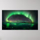 aurora borealis northern lights atmosphere poster. The beautiful emerald green of the aurora borealis or northern lights is captured perfectly here in this photographic print poster. The beauty and mystery or our world is perfectly represented by this image of the eerie and strange effect of the suns rays in the deep blue night sky as it is played around our earths atmosphere to create this wonderful and stunning light show.