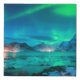 Aurora borealis over the sea coast, snowy mountain faux canvas print