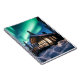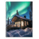 Nice notebook with beautiful Aurora borealis over winter cabin.