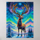 The intricate details in the stag's fur, adorned with cosmic patterns, evoke a sense of mystery and wonder, appealing to those drawn to fantasy, wildlife, or celestial art. The brilliant shades of blues, greens, purples, and golds in the sky echo the magic of the northern lights, offering a piece that is both vibrant and calming.