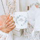 This bridal coffee mug features elegant dusty blue and white florals and an elegant minimalist font. It's perfect for any bride-to-be.