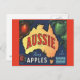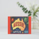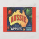 Aussie Apples from Tasmania is a vintage fruit crate label from 1933 . A map of Australia in the center with red and green apples around it.
