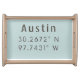 Austin Texas latitude and longitude map coordinates in modern urban font.