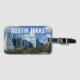 This modern Austin Texas luggage tag features beautiful blue sky and clouds above the city skyline. All of the new buildings against the pretty green trees that epitomizes the beauty of the urban downtown and nature of the place. Great travel keepsake gift for a visitor or a local Austinite that likes to explore Butler Park, Liz Carpenter splash pad, and Auditorium Shores.