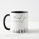 Austin skyline coffee mug favor gift with "thank you" script. The design showcases a stunning sketch with the ability to customize your names and exact location. Enter the Zazzle design tool for additional customizations.