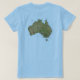 The front of this t-shirt boldly displays the Australian flag with its distinctive white southern cross stars on the blue ensign. This is matched at the back by an attractive map of Australia.