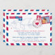 Plain white envelopes are included with paper invitations and will come to fit the invitation size you select. If you don’t need the envelopes, you may choose to not receive them by selecting the dropdown below "Envelopes" and choosing "None." If you’d like to have a design on your envelopes, you can browse all of these available envelopes to find the design that complements your Australia Hawaii Air Mail Post Reception Invitation.