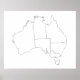 Map of Australia with blank outlines of states in black and white to use for educational purposes, to keep track of places you travel, or for any other purpose. Write on to label states with your own information. Great for teachers or classroom.