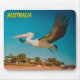 A pelican flying along the beach at Monkey Mia, Western Australia.