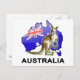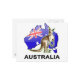 Australia is the smallest continent; between the South Pacific and the Indian Ocean. A kangaroo is superimposed on the flag filled map of Australia.