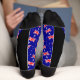 This fun Halloween socks are bright and colorful. The small print is crisp and shows the fun details. The softness of the socks feels nice on my feet and ankles. .