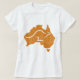 A stylized map of Australia with a kangaroo running across it - the word Australia is written on the map