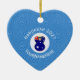 An angel wears the flag of Australia for your Hanukkah decor while flying in a circle of white squiggly squares. The background is blue squiggly squares. Designed especially for Australian families with mixed religion. Add a name for a personalized look. Add the year to customize. Or, change the text fon this heart shaped ceramic ornament for your own Hanukkah message.